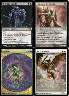 Onto today's post topic titled 'New MTGO Arts'.  Magic the Gathering Online (or MTGO) is the most popular place for gamers to sling virtual MTG cards and if you have an internet connection and love this card game, chances are you are likely playing nearly every day.  Anywhoos - Forum user Niabock has giving a rundown of new card art files with the last update.  It is thought to be new promos or perhaps product (Cube, etc.) and not likely (but not impossible) to see cardboard print as a promo or an upcoming set.  Let's have a looky-see -