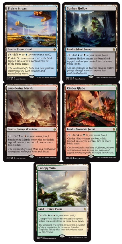 The latest Magic: the Gathering set, Battle for Zendikar releases tomorrow at midnight here in North America with many local gaming stores (like our very own beloved OMG! Games here in Barrie, Ontario) staying open late to hit the street release date. We'll be zipping on over to the store at midnight in order to avoid a (larger) crush of rabid gamers clearing out singles and sealed product. As is our custom here at MTG Realm, we will have a Fat Pack unboxing - and this may be the one time where will will NOT complain about getting a 80-card land pack (over the earlier version of a 40-card land pack).